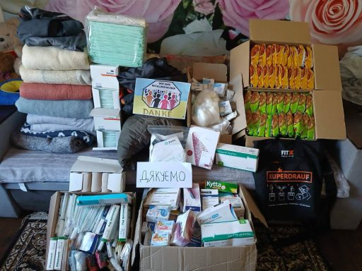 Gesammelte Schenkungen für einen Hilfskonvoi in die Ukraine: