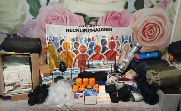 Schlafsäcke, Decken, Gas- und Wasserkocher, Verbandsmateriel, Medikamente, Nahrungsmittel